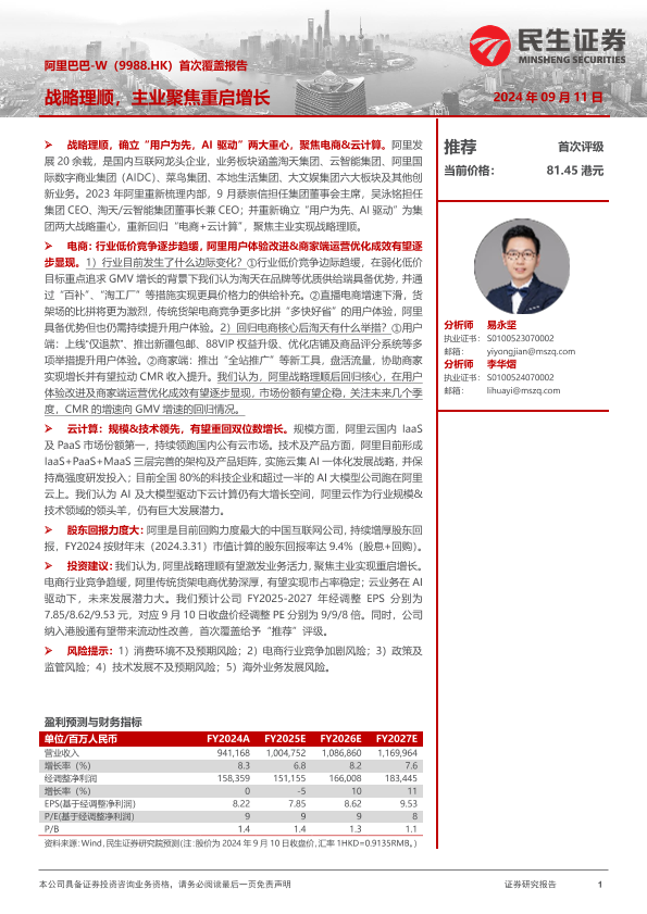 【民生证券】【20240911】阿里巴巴-W(09988.HK)战略理顺,主业聚焦重启增长-44页