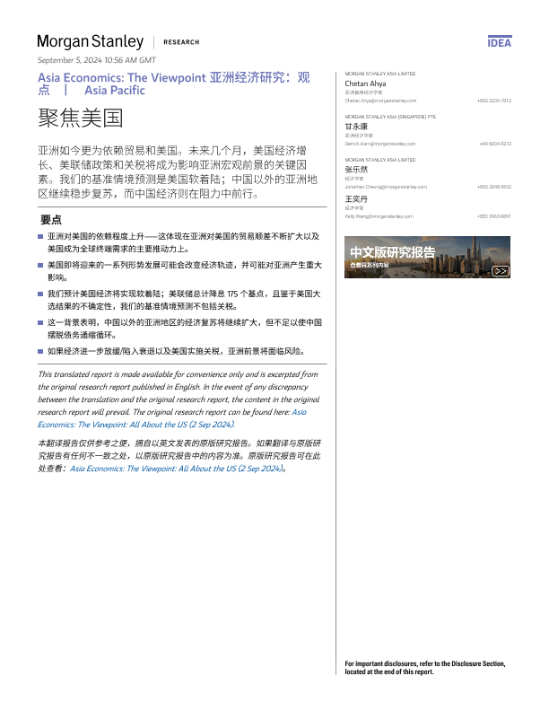 【Morgan Stanley】【20240902】亚洲经济研究:观点 聚焦美国-18页