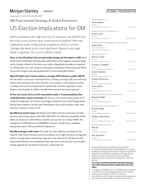 【Morgan Stanley】【20240614】Morgan Stanley Fixed-EM Fixed Income Strategy & Global Economics US Election Implications for EM-79页