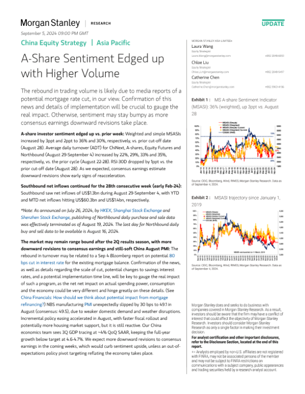 【Morgan Stanley】【20240904】Morgan Stanley-China Equity Strategy A-Share Sentiment Edged up with Higher Volume-11页