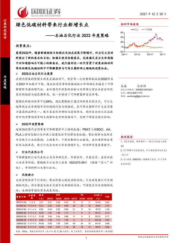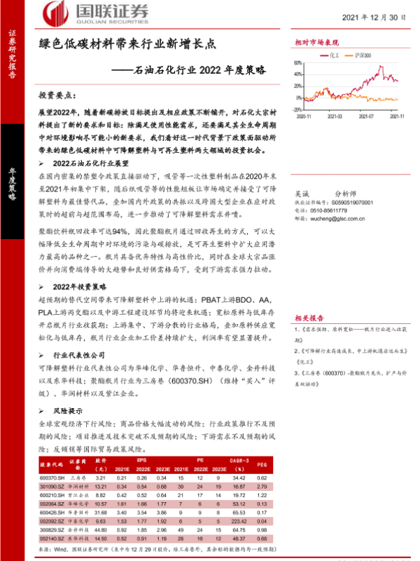 【国联证券】【20211230】石油石化行业2022年度策略:绿色低碳材料带来行业新增长点-36页