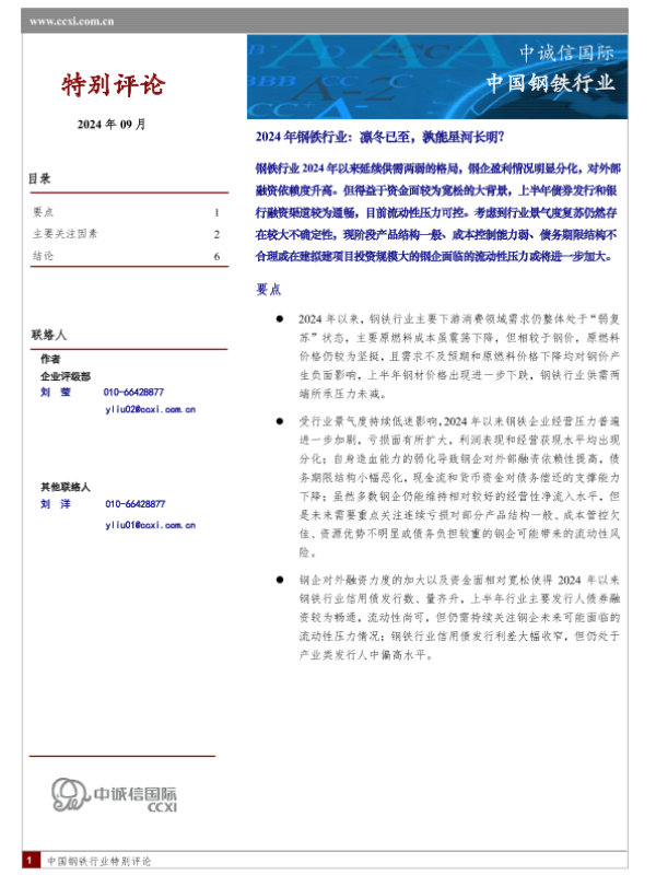 【中诚信国际】【202409】2024年钢铁行业:凛冬已至,孰能星河长明?-9页