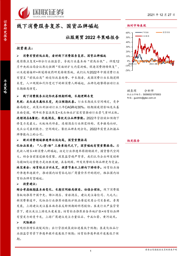 【国联证券】【20211227】社服商贸行业2022年策略报告:线下消费服务复苏、国货品牌崛起-45页