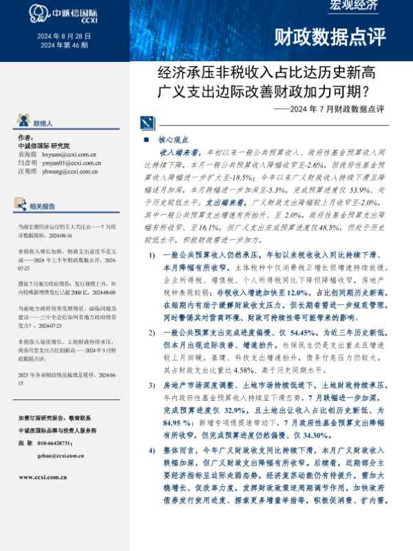 【中诚信国际】【20240828】经济承压非税收入占比达历史新高,广义支出边际改善财政加力可期?-9页