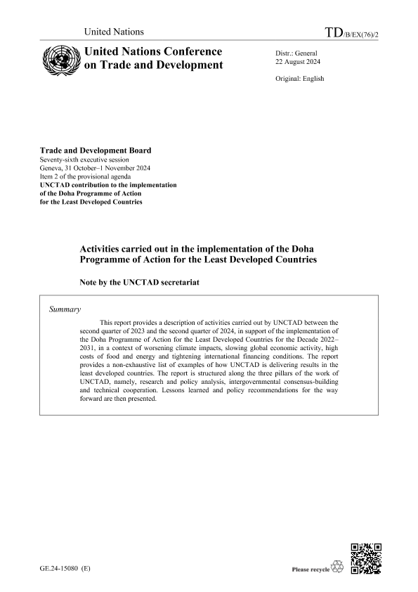 【联合国贸易发展委员会】【20241031】为执行《支援最不发达国家多哈行动纲领》而开展的活动-15页