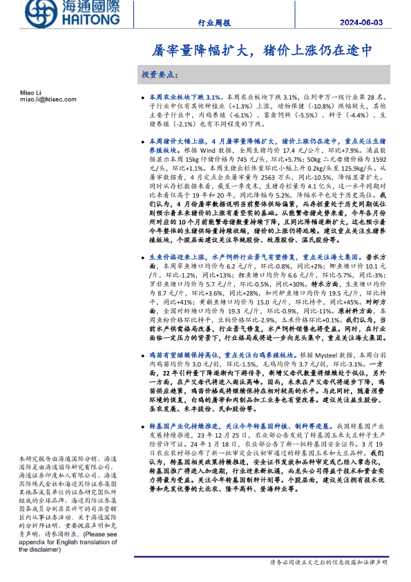 【海通国际】【20240603】农业:屠宰量降幅扩大,猪价上涨仍在途中-18页