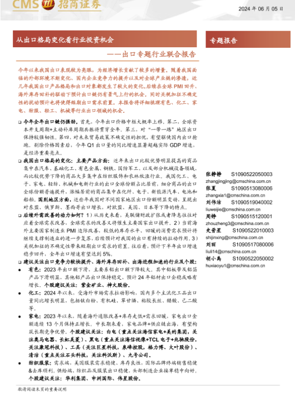 【海通证券】【20240605】出口专题行业联合报告:从出口格局变化看行业投资机会-56页