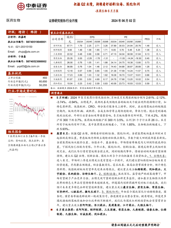 【中泰证券】【20240602】医药生物行业6月月报:把握Q2业绩,持续看好创新/出海、国改/红利-16页