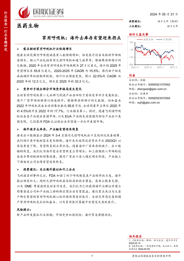 【国联证券】【20240531】医药生物行业专题研究:家用呼吸机,海外去库存有望迎来拐点-11页