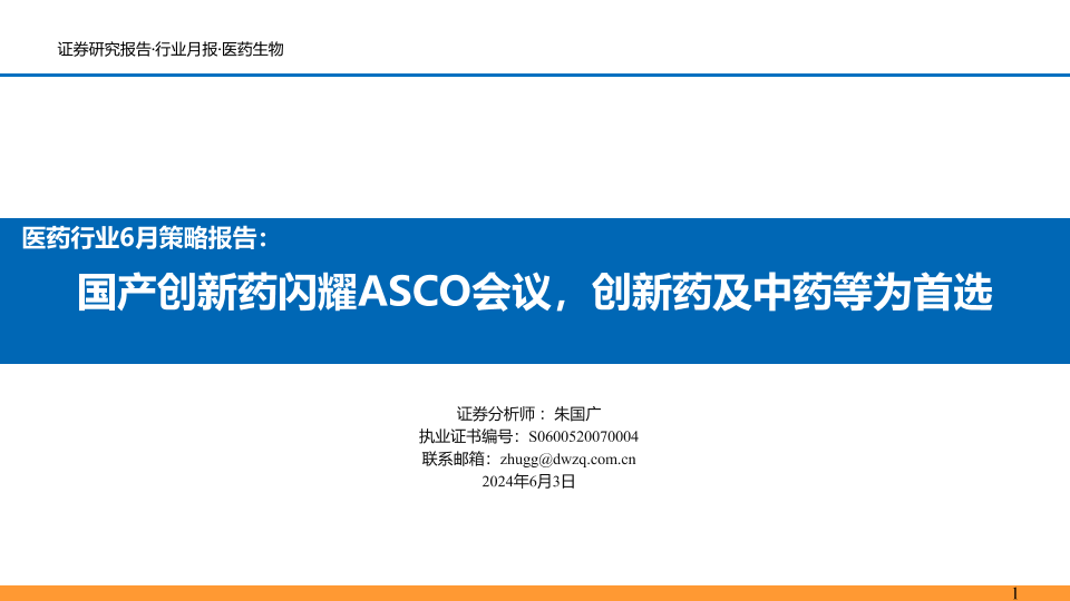 【东吴证券】【20240603】医药行业6月策略报告:国产创新药闪耀ASCO会议,创新药及中药等为首选-37页