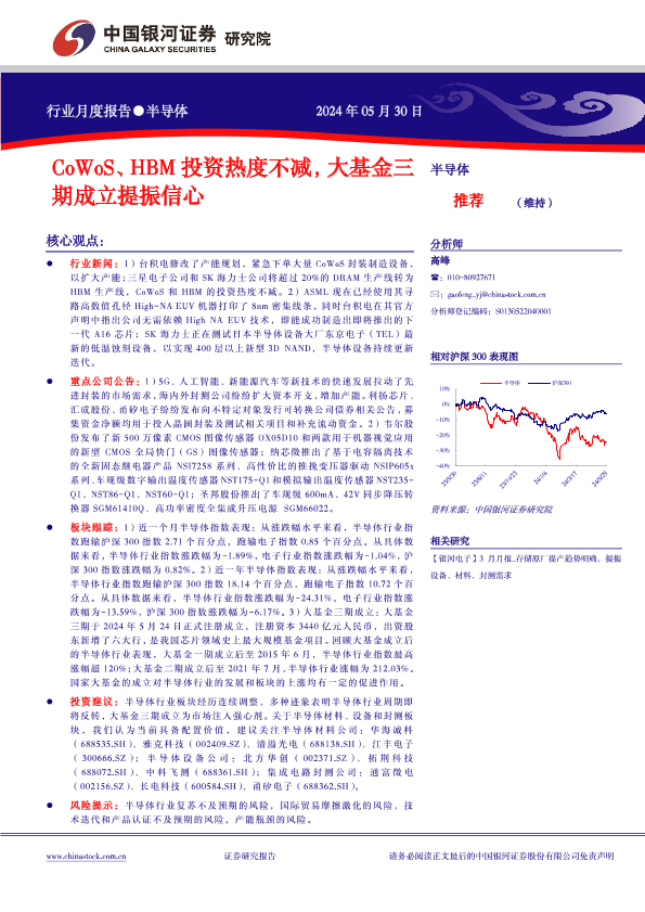 【银河证券】【20240530】半导体行业月度报告:CoWoS、+HBM投资热度不减,大基金三期成立提振信心-11页