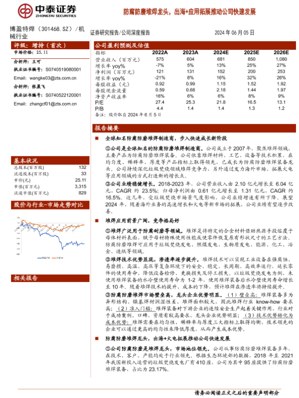 【中泰证券】【20240605】博盈特焊(301468)防腐防磨堆焊龙头,出海%2b应用拓展推动公司快速发展-25页