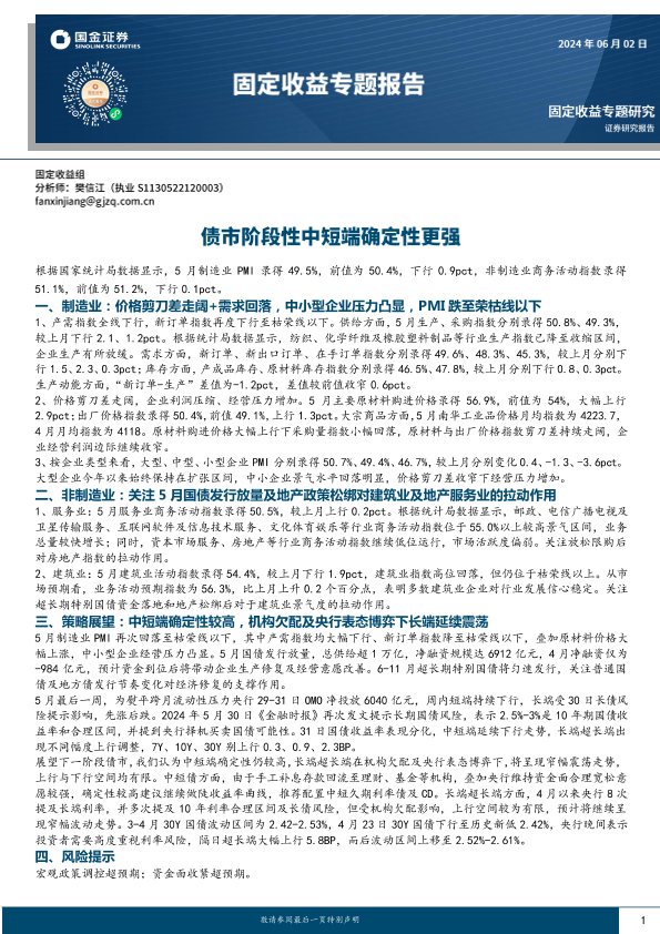 【国金证券】【20240602】固定收益专题报告:债市阶段性中短端确定性更强-14页