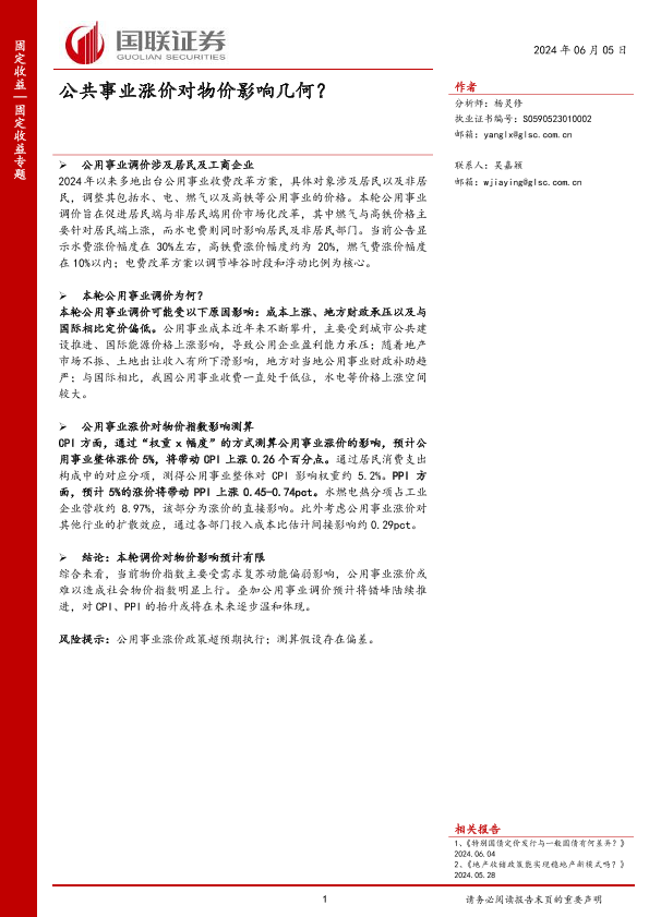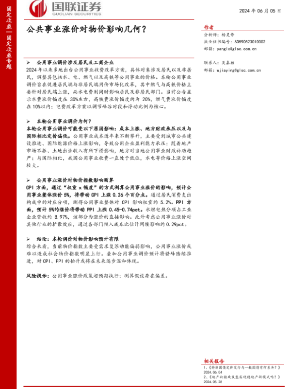 【国联证券】【20240605】固定收益专题:公共事业涨价对物价影响几何?-11页
