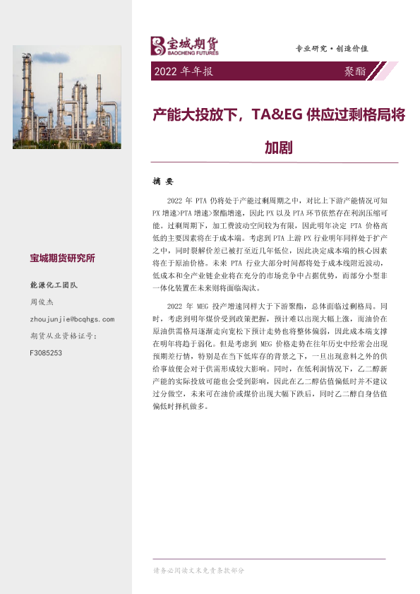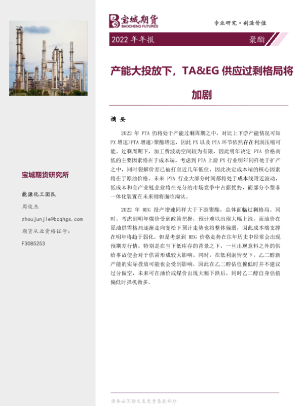 【宝城期货】【20211231】聚酯2022年年报:产能大投放下,TA&EG供应过剩格局将加剧-18页