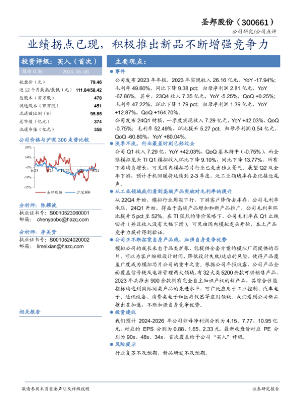 【华安证券】【20240606】圣邦股份(300661)业绩拐点已现,积极推出新品不断增强竞争力-10页