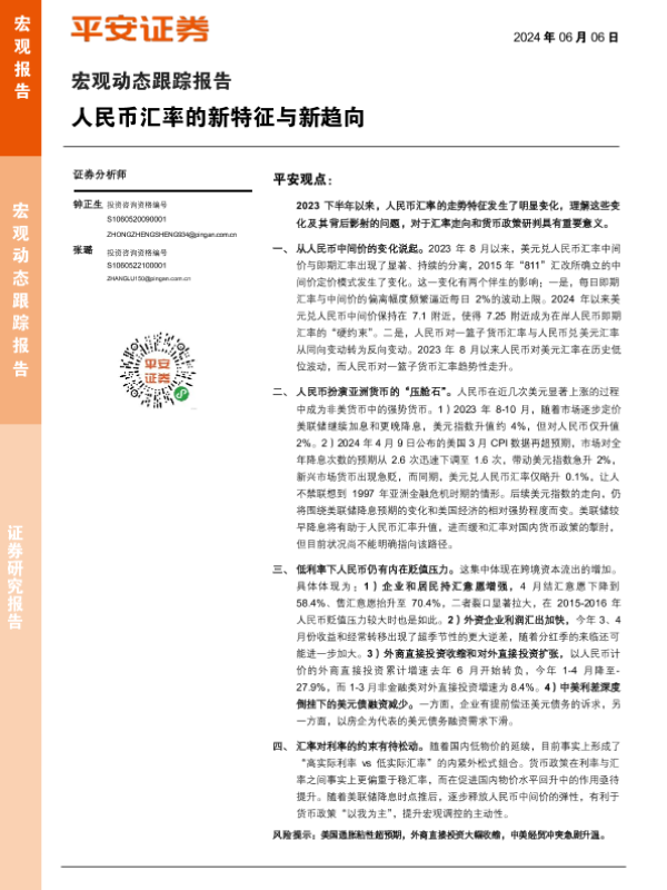 【平安证券】【20240606】宏观动态跟踪报告:人民币汇率的新特征与新趋向-10页