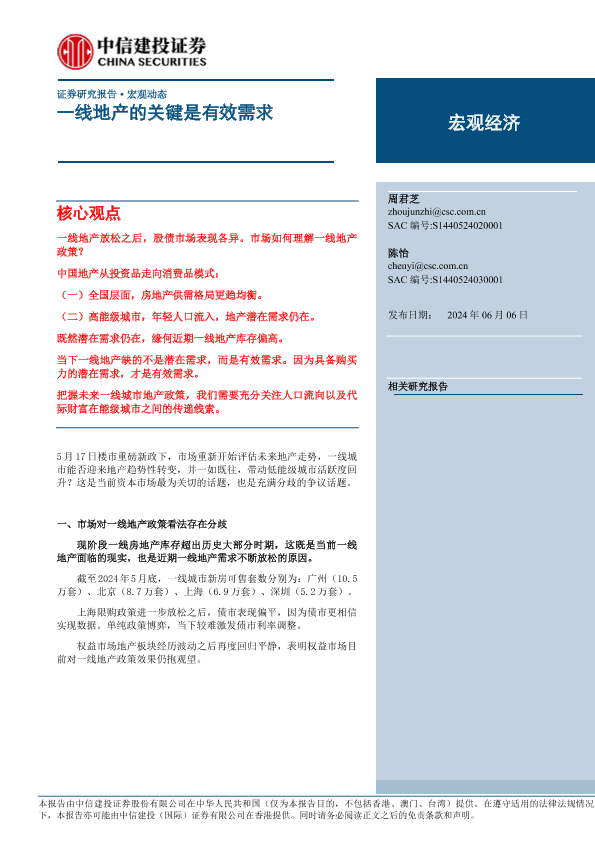 【中信建投证券】【20240606】宏观动态:一线地产的关键是有效需求-21页