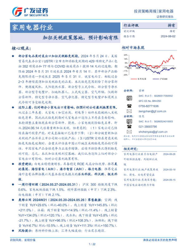 【广发证券】【20240602】家用电器行业:加征关税政策落地,预计影响有限-22页