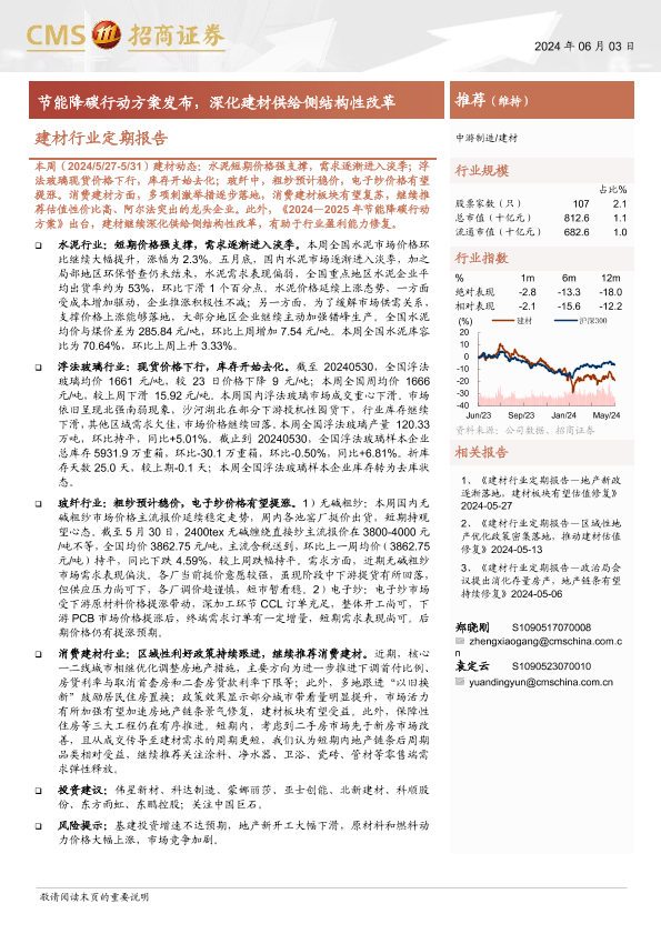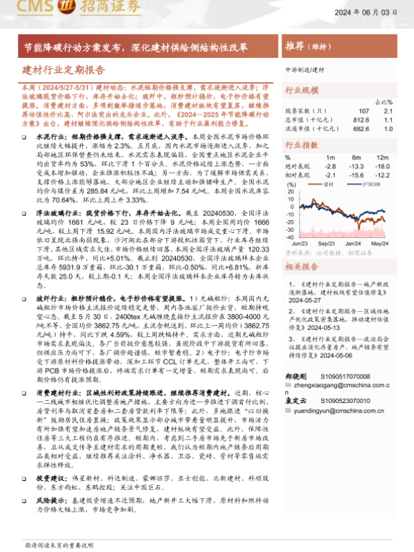 【海通证券】【20240603】建材行业定期报告:节能降碳行动方案发布,深化建材供给侧结构性改革-27页