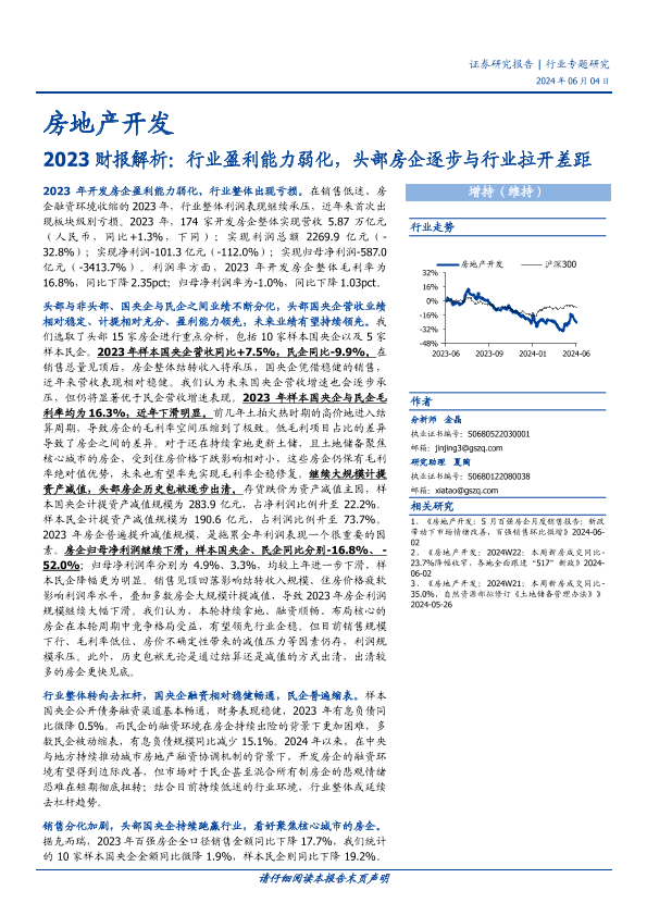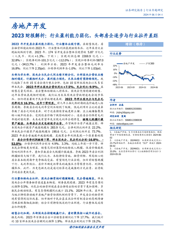 【国盛证券】【20240604】房地产开发行业2023财报解析:行业盈利能力弱化,头部房企逐步与行业拉开差距-20页
