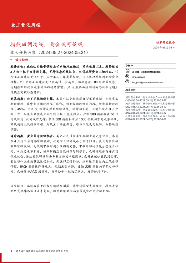【西部证券】【20240604】技术分析洞察:指数回调均线,黄金或可低吸-12页
