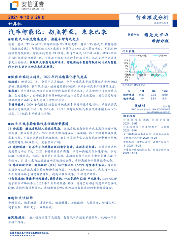 【安信证券】【20211226】计算机行业深度分析:汽车智能化,拐点将至,未来已来-26页