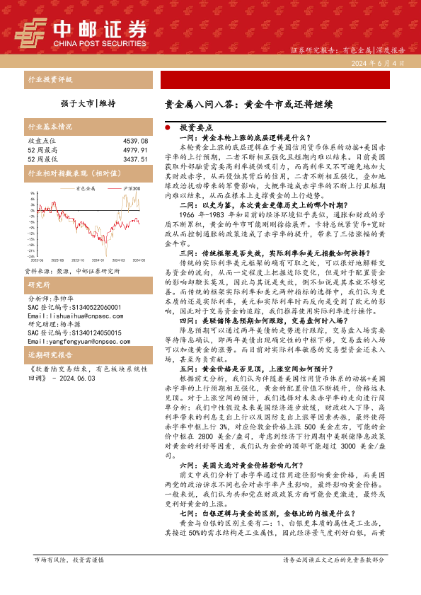【中邮证券】【20240604】贵金属八问八答:黄金牛市或还将继续-29页