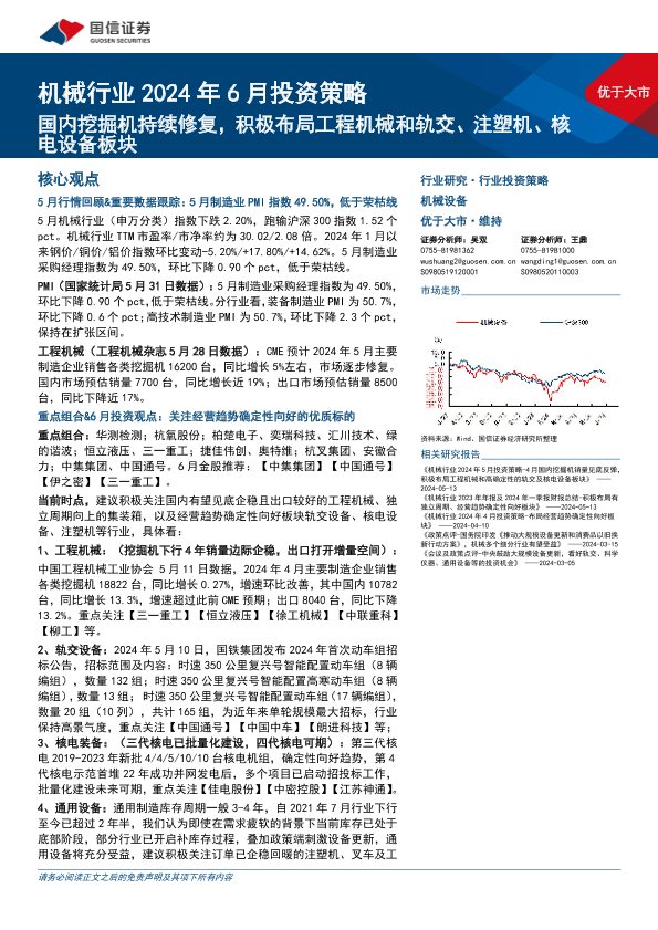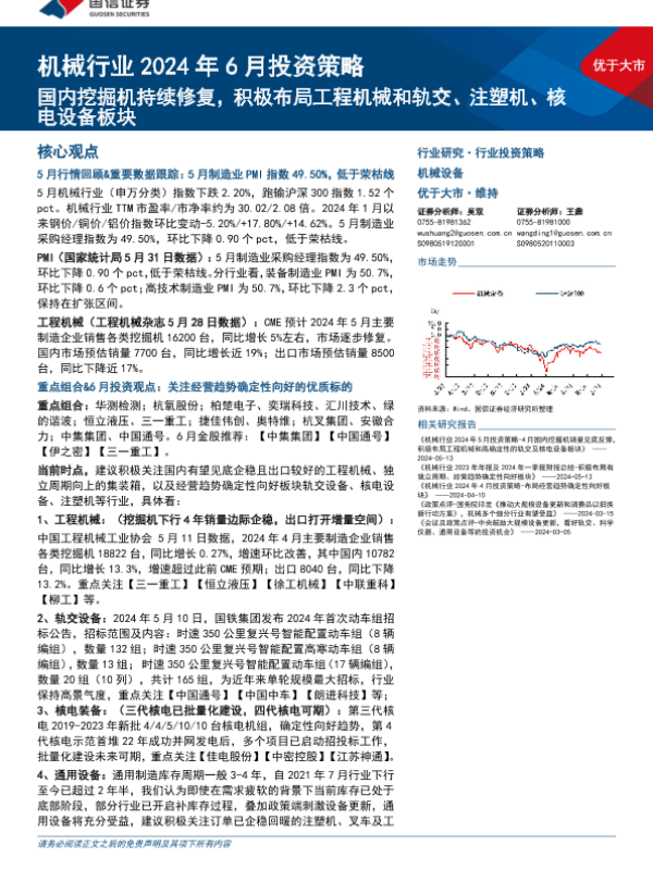 【国信证券】【20240604】机械行业2024年6月投资策略:国内挖掘机持续修复,积极布局工程机械和轨交、注塑机、核电设备板块-23页