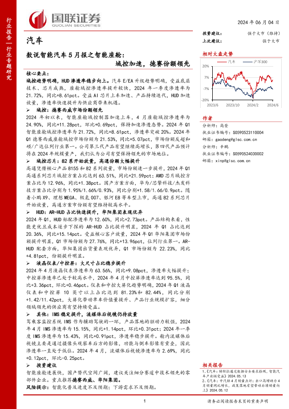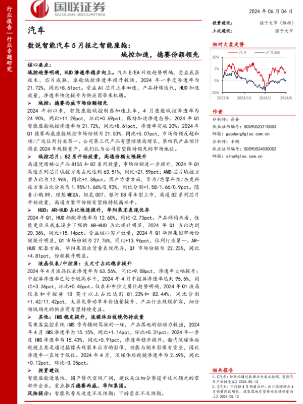 【国联证券】【20240604】汽车行业数说智能汽车5月报之智能座舱:域控加速,德赛份额领先-14页