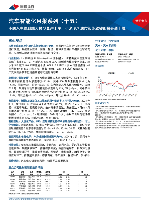 【国信证券】【20240604】汽车智能化月报系列(十五):小鹏汽车端到端大模型量产上车,小米SU7城市智能驾驶即将开通十城-72页