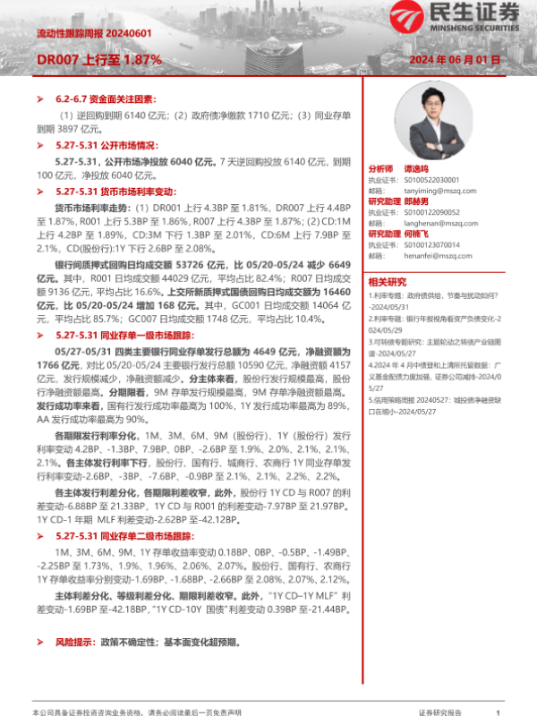 【民生证券】【20240601】流动性跟踪:DR007上行至1.87%-17页