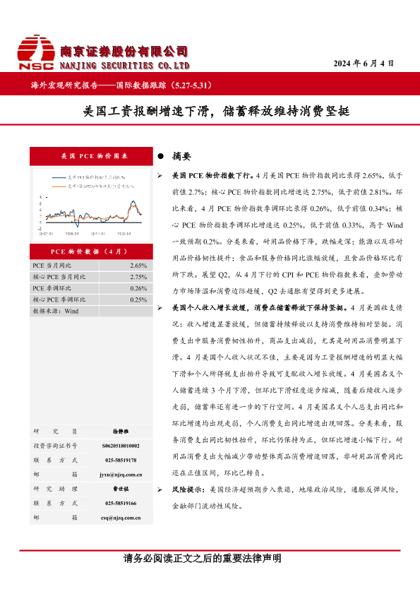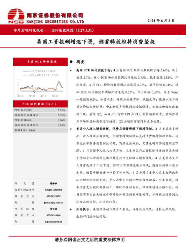 【南京证券】【20240604】海外宏观研究报告-国际数据跟踪:美国工资报酬增速下滑,储蓄释放维持消费坚挺-11页