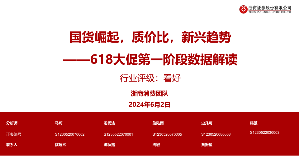 【浙商证券】【20240602】消费行业618大促第一阶段数据解读:国货崛起,质价比,新兴趋势-19页