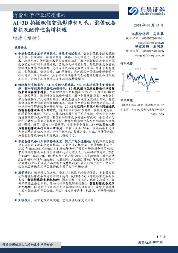 【东吴证券】【20240607】消费电子行业深度报告:AI+3D拍摄赋能智能影像新时代,影像设备整机及配件迎高增机遇-19页
