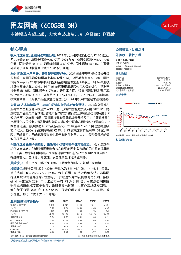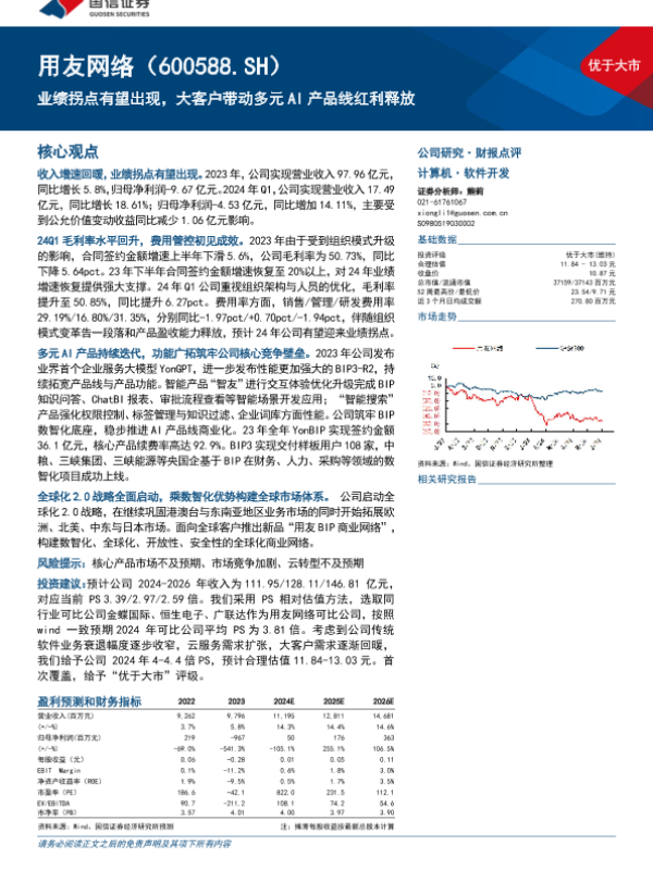 【国信证券】【20240604】用友网络(600588)业绩拐点有望出现,大客户带动多元AI产品线红利释放-13页