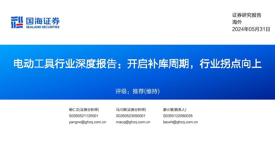 【国海证券】【20240531】电动工具行业深度报告:开启补库周期,行业拐点向上-63页