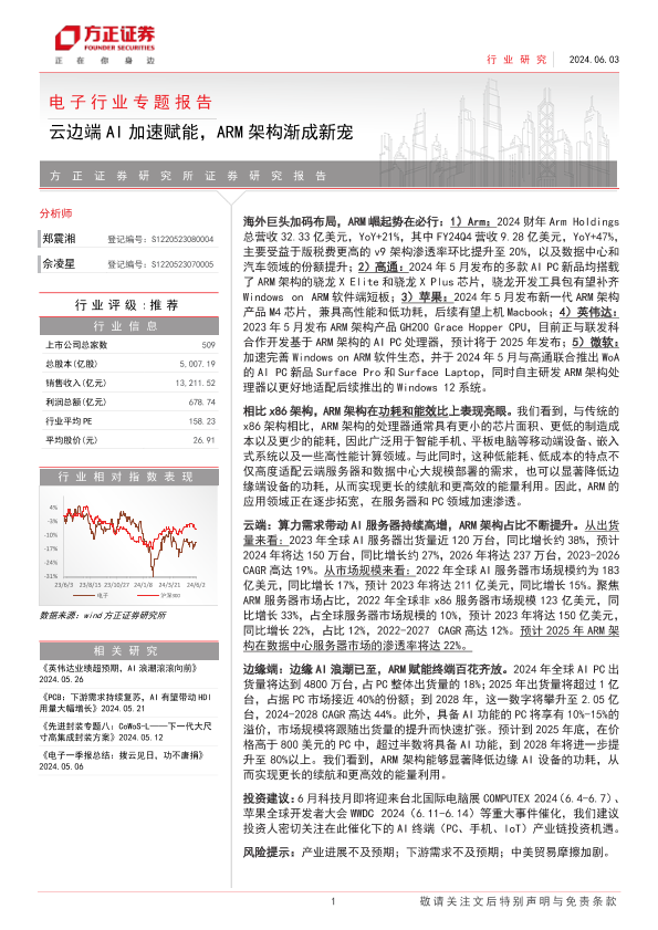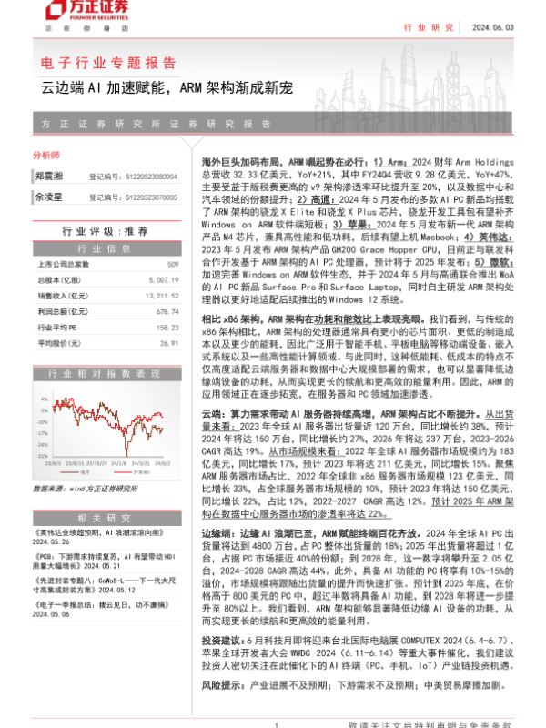 【方正证券】【20240603】电子行业专题报告:云边端AI加速赋能,ARM架构渐成新宠-19页