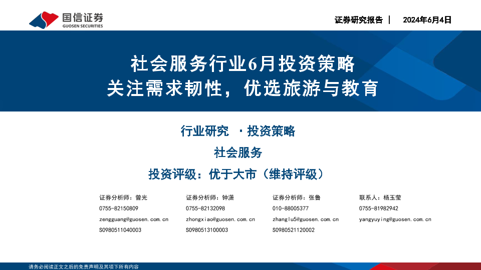 【国信证券】【20240604】社会服务行业6月投资策略:关注需求韧性,优选旅游与教育-20页