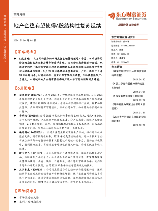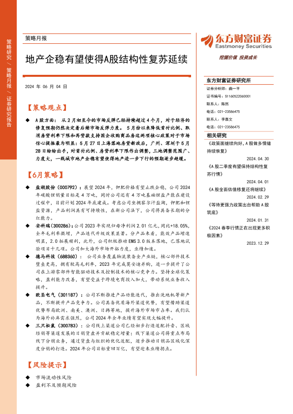 【东方财富证券】【20240604】策略月报:地产企稳有望使得A股结构性复苏延续-14页