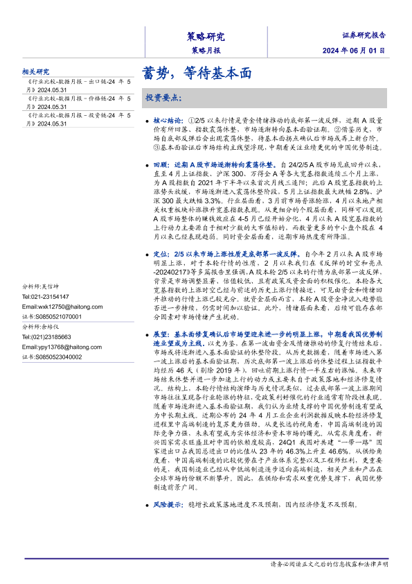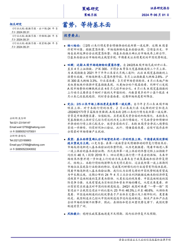 【海通证券】【20240601】策略月报:蓄势,等待基本面-10页