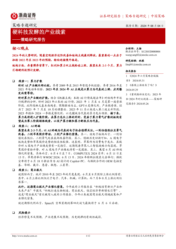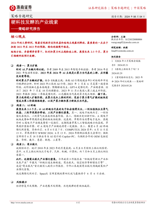 【浙商证券】【20240604】策略研究报告:硬科技发酵的产业线索-12页