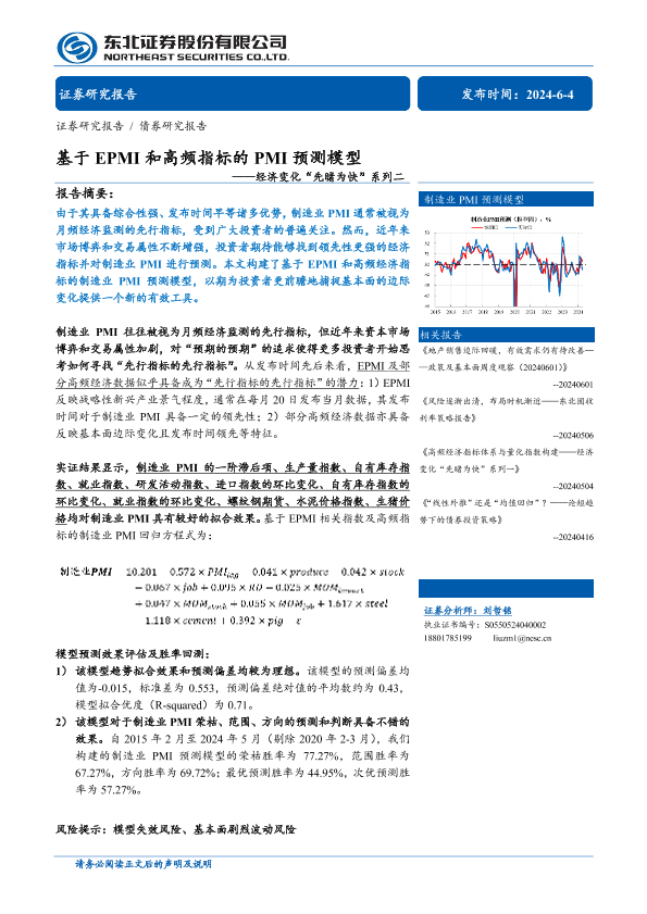 【东北证券】【20240604】经济变化“先睹为快”系列二:基于EPMI和高频指标的PMI预测模型-20页