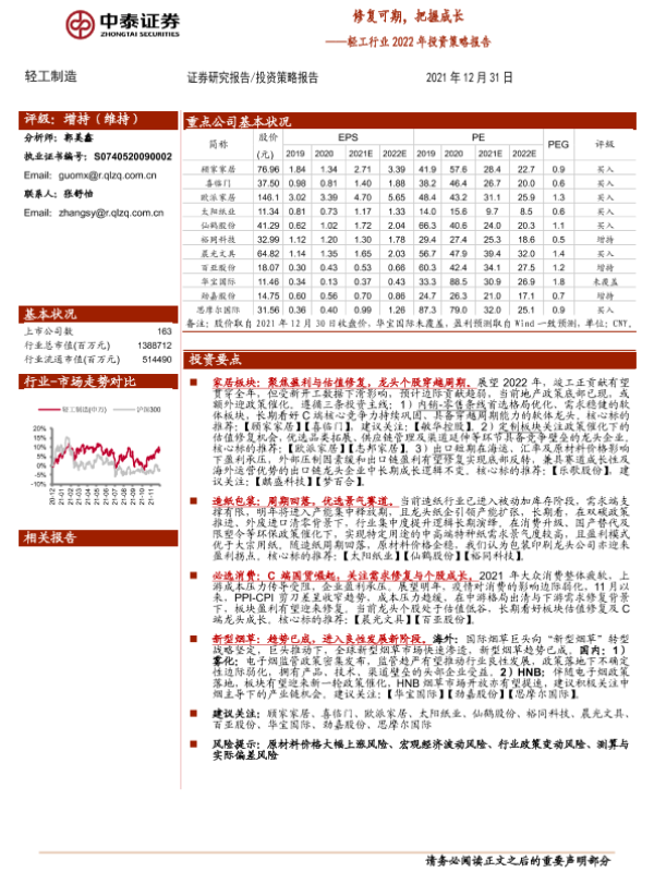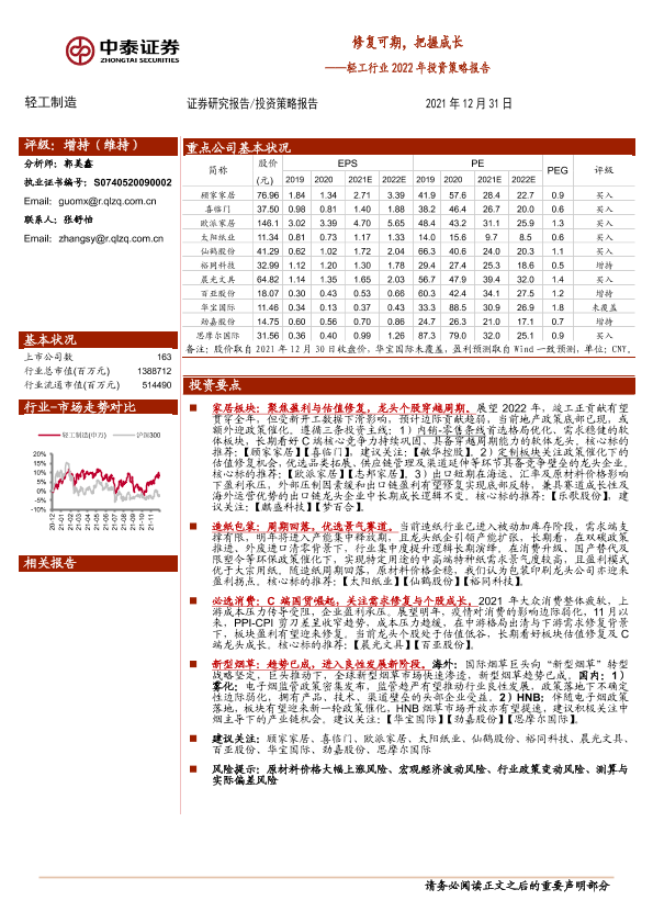 【中泰证券】【20211231】轻工行业2022年投资策略报告:修复可期,把握成长-52页
