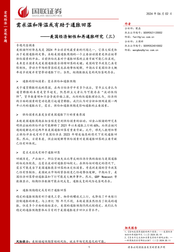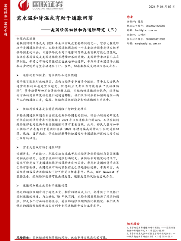 【国联证券】【20240602】美国经济韧性和再通胀研究(三):需求温和降温或有助于通胀回落-31页