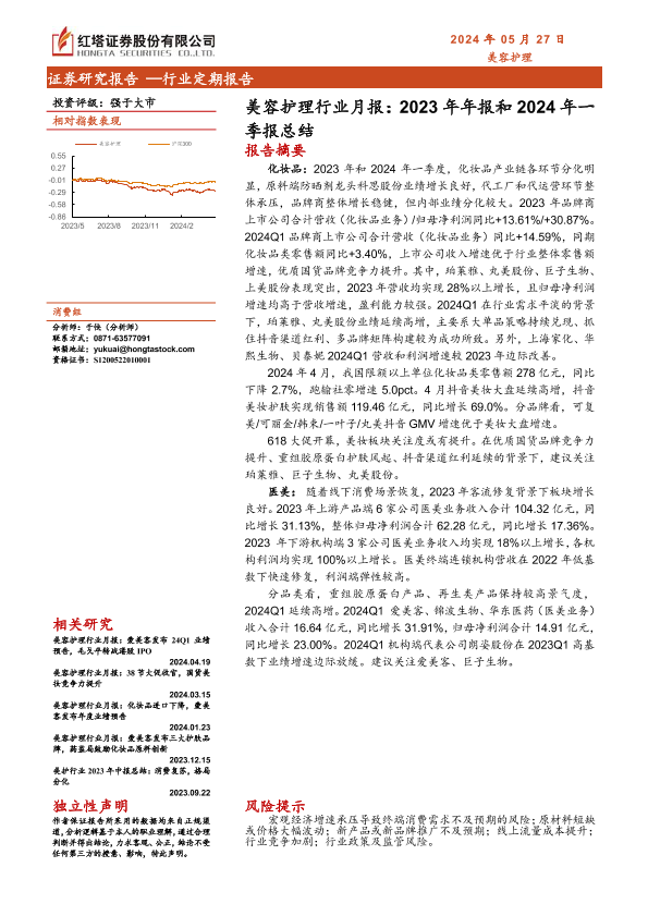 【红塔证券】【20240527】美容护理行业月报:2023年年报和2024年一季报总结-10页