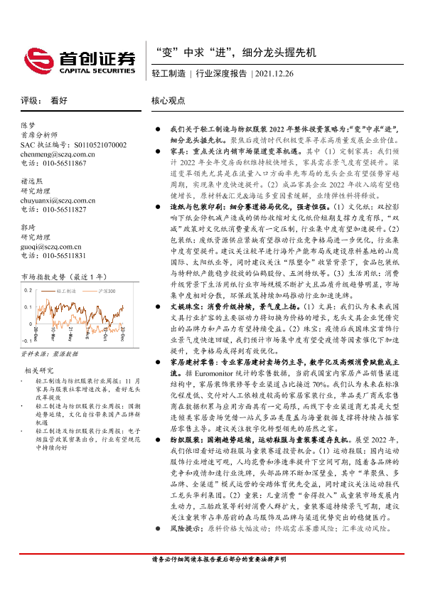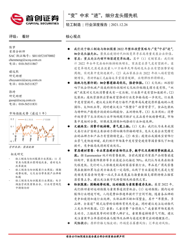 投资策略 细分市场 行业分析 证券研究 轻工制造