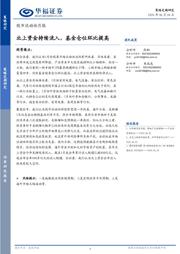 【华福证券】【20240604】股市流动性月报:北上资金持续流入,基金仓位环比提高-13页