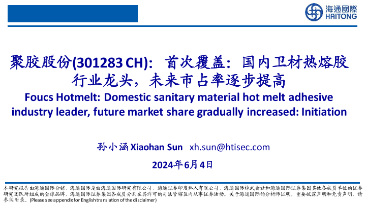 【海通国际】【20240604】聚胶股份首次覆盖:国内卫材热熔胶行业龙头,未来市占率逐步提高-72页