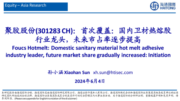 【海通国际】【20240604】聚胶股份-国内卫材热熔胶行业龙头,未来市占率逐步提高-72页
